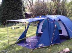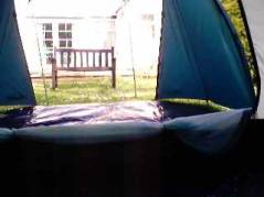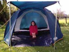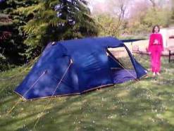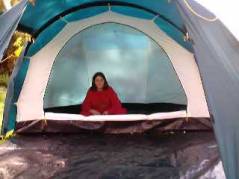 This time, Jay was determined to have her own tent, so here it is. It is described as tunnel-shaped, the outer cover tensioned by three flexible poles, while the sleeping module is suspended inside.