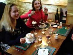 prospect of the uphill walk home is too much. We wait for a taxi to