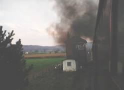 After our first run, we watch preparations for the next departure, which is to be pulled by a diesel (right)– not so popular – and we give it a miss, returning later for an evening run on another steam hauled train