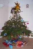 We bought a traditional Christmas tree for the main room. Less traditional, though we’ve had him for