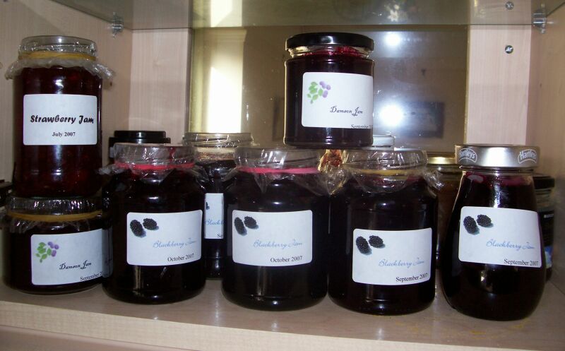 bushes in the nearby lane, and apples, mainly from kind neighbours. The jam shelf is beginning to look quite