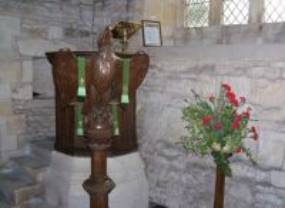 A fine eagle lectern, and flower arrangement – poppies