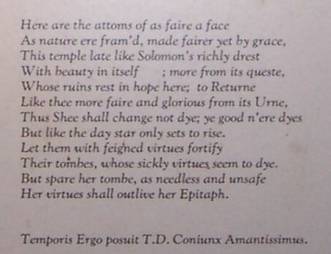 the text of a memorial tablet on the north wall, dated 1671, and thought to