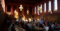 and were treated to a generous buffet in the Dining Hall (right): a range of cold fish and meats, with