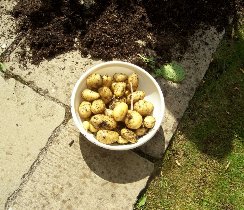 potatoes – a good crop this time, so a technique to be repeated. And for the first time Teresa also grew her