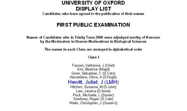 she had taken her Honour Moderations. A