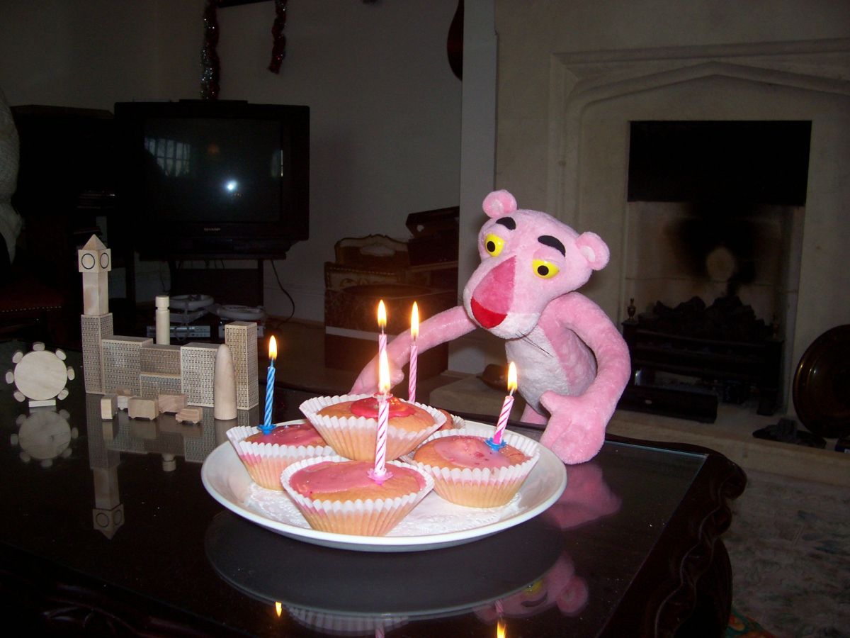 Her ‘cake’ was a few pink iced buns, shared with a favourite toy.
