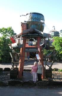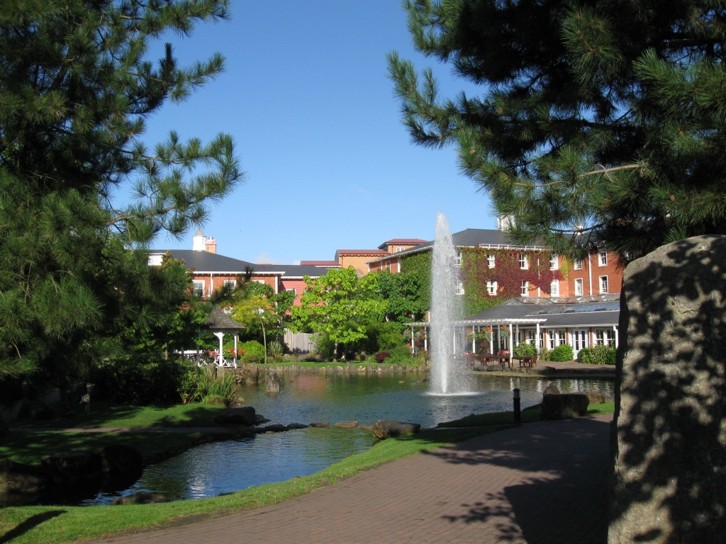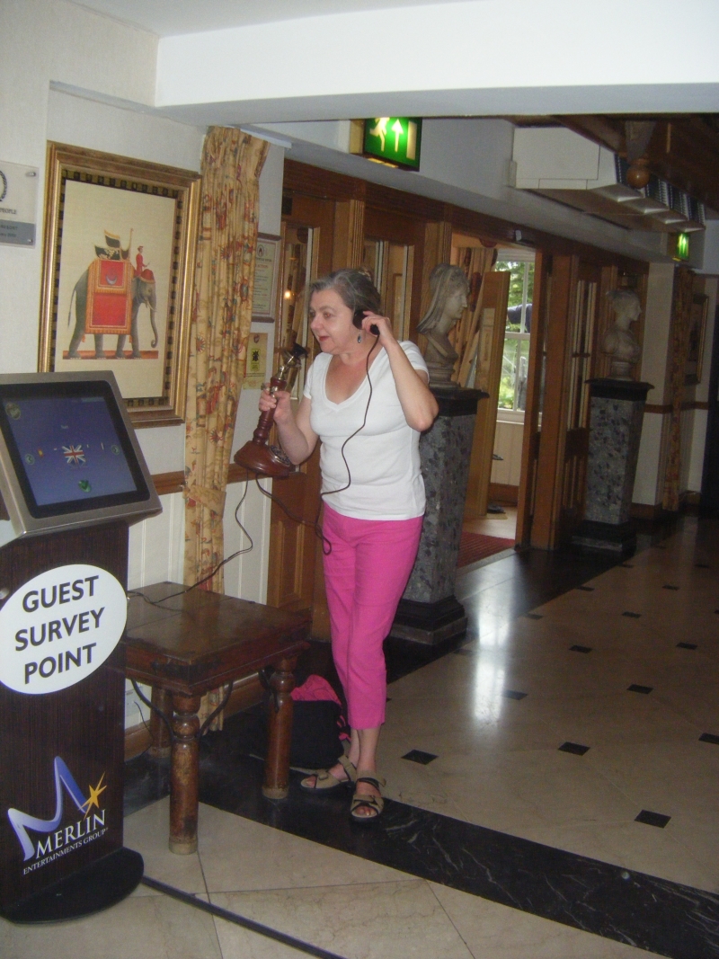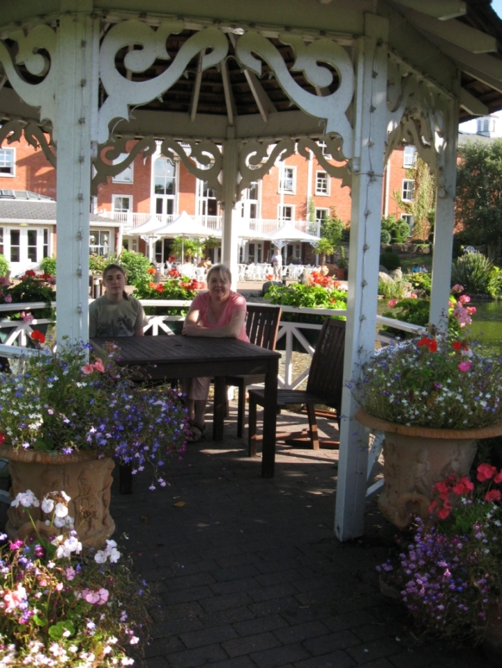 Towers Hotel (left) and also of the Splash Landings (right). After that we asked Satnav for a leisurely way home avoiding motorways and it found a brilliant route on good roads with very little traffic, and scarcely half an hour longer than the frantic dash up the motorway to get there. |