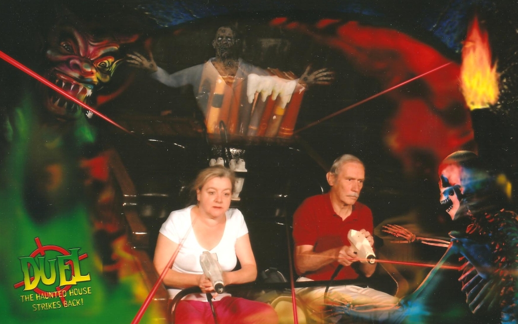 game Duel – shooting up the ghosts and ghoulies with a laser gun Teresa and Roger played (near right), Roger