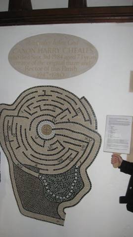 the maze, wooden carvings showed pilgrim stations – twelve of these now