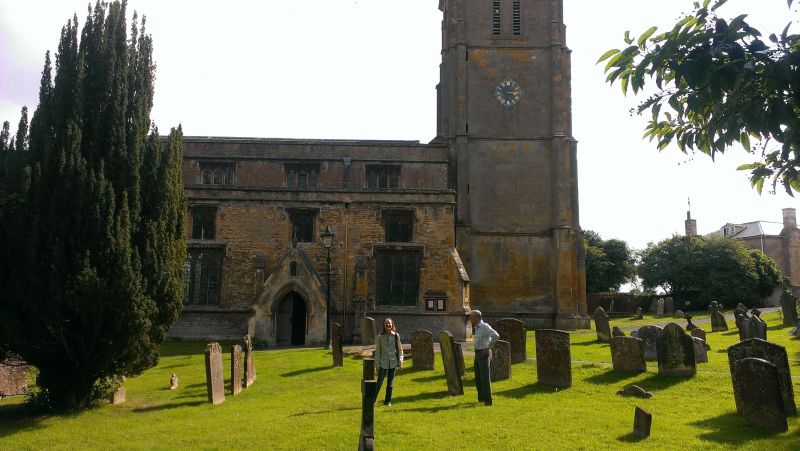 tower (above left) and Helen and Roger in the churchyard (above right)