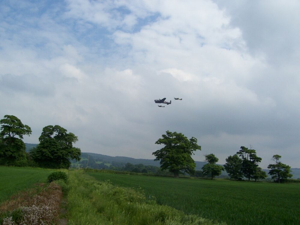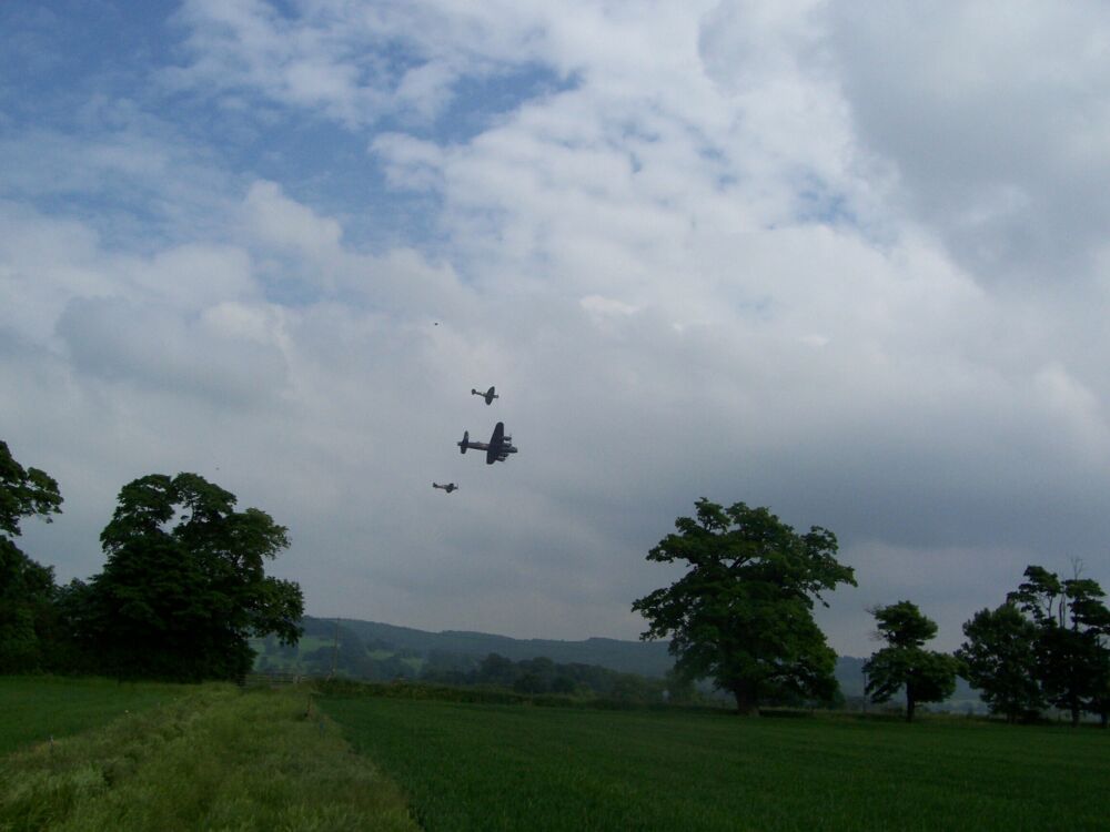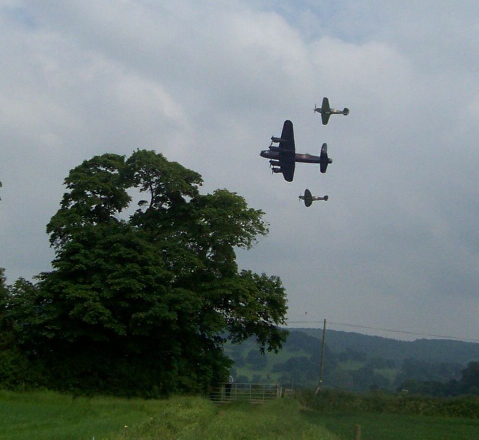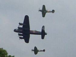 the flight consisted of a Lancaster bomber flanked by a Spitfire and a Hurricane |