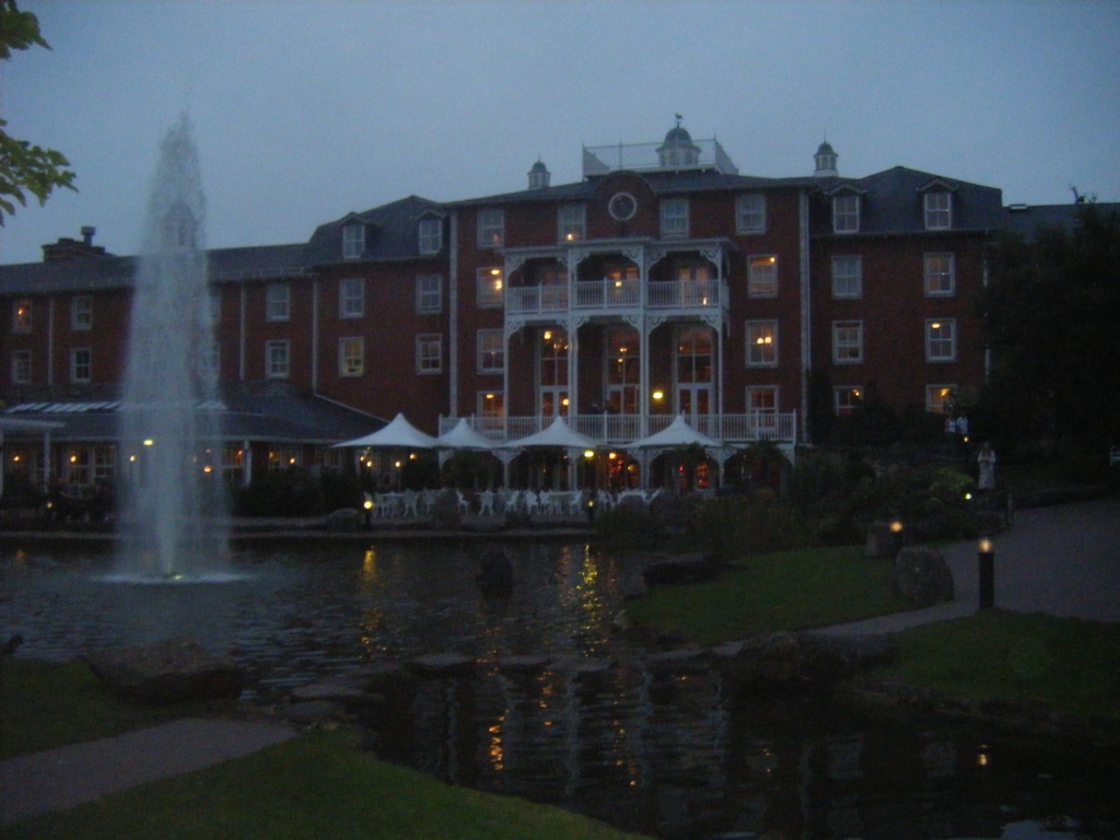 Towers Hotel (left) and also of the Splash Landings (right). After that we asked Satnav for a leisurely way home avoiding motorways and it found a brilliant route on good roads with very little traffic, and scarcely half an hour longer than the frantic dash up the motorway to get there. |