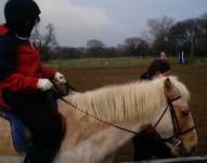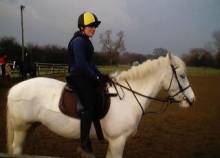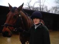 Roz, who hadn’t been on a horse before Here they are in the school, Lucy leading on the
