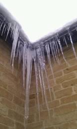 sunny, the snow still lies where the traffic has not cleared it and the icicles