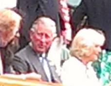 about to serve … looking up to see Prince Charles chatting to Bruce Forsyth