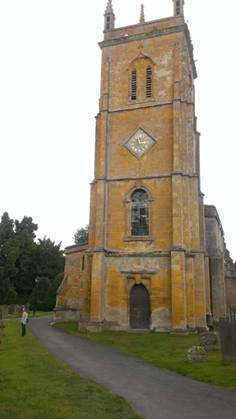 tower (above left) and Helen and Roger in the churchyard (above right)
