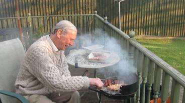 Roger tends the barbecue