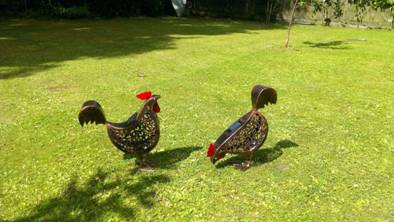 this rather fetching pair of hens, which light up at night: an unexpected benefit seemed to be their