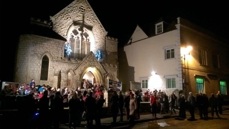 carollers in the town centre (below); Jay is in the red coat, foreground to the