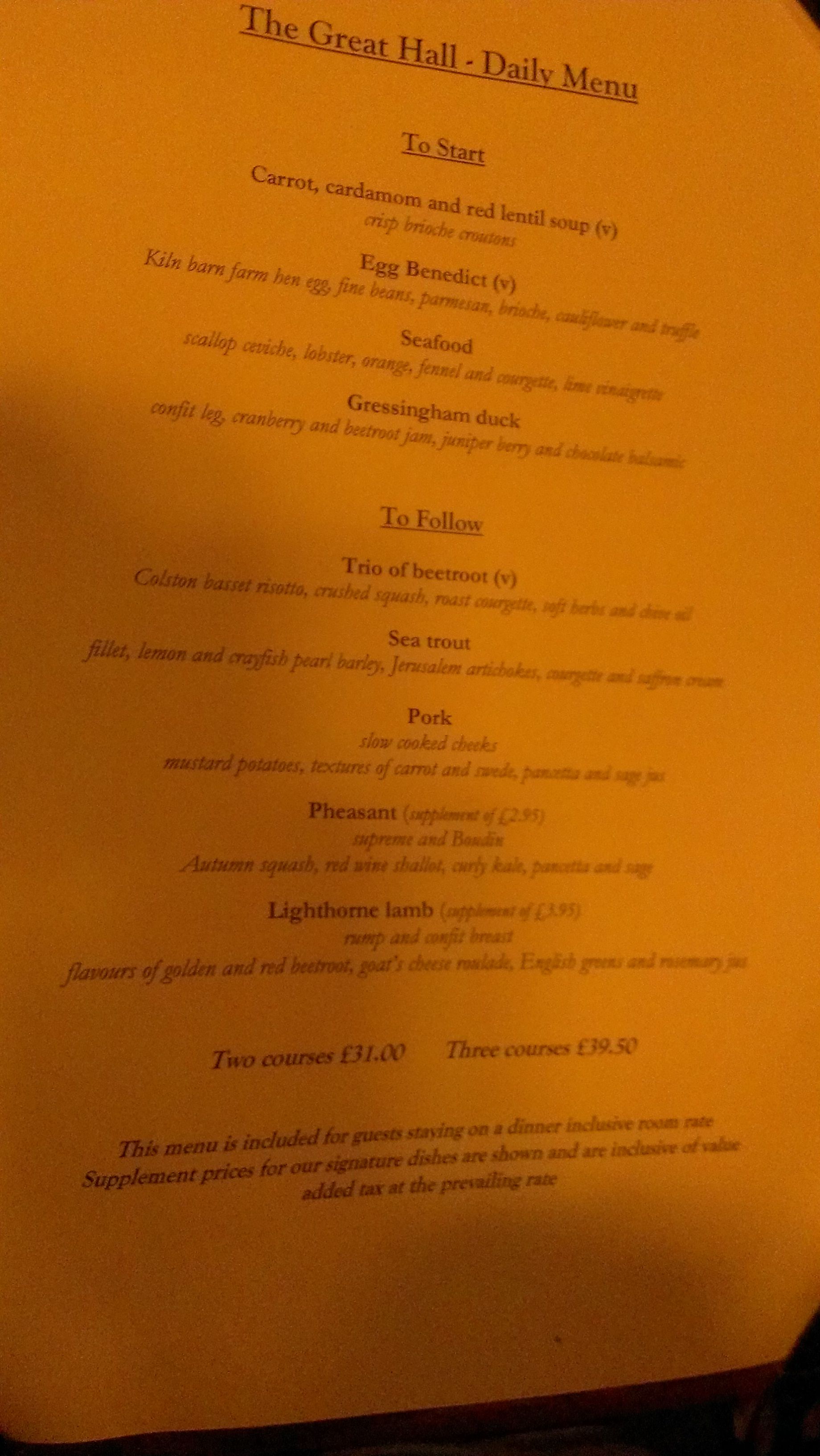 was a meal at the Lygon Arms in Broadway, courtesy of Teresa’s spa loyalty