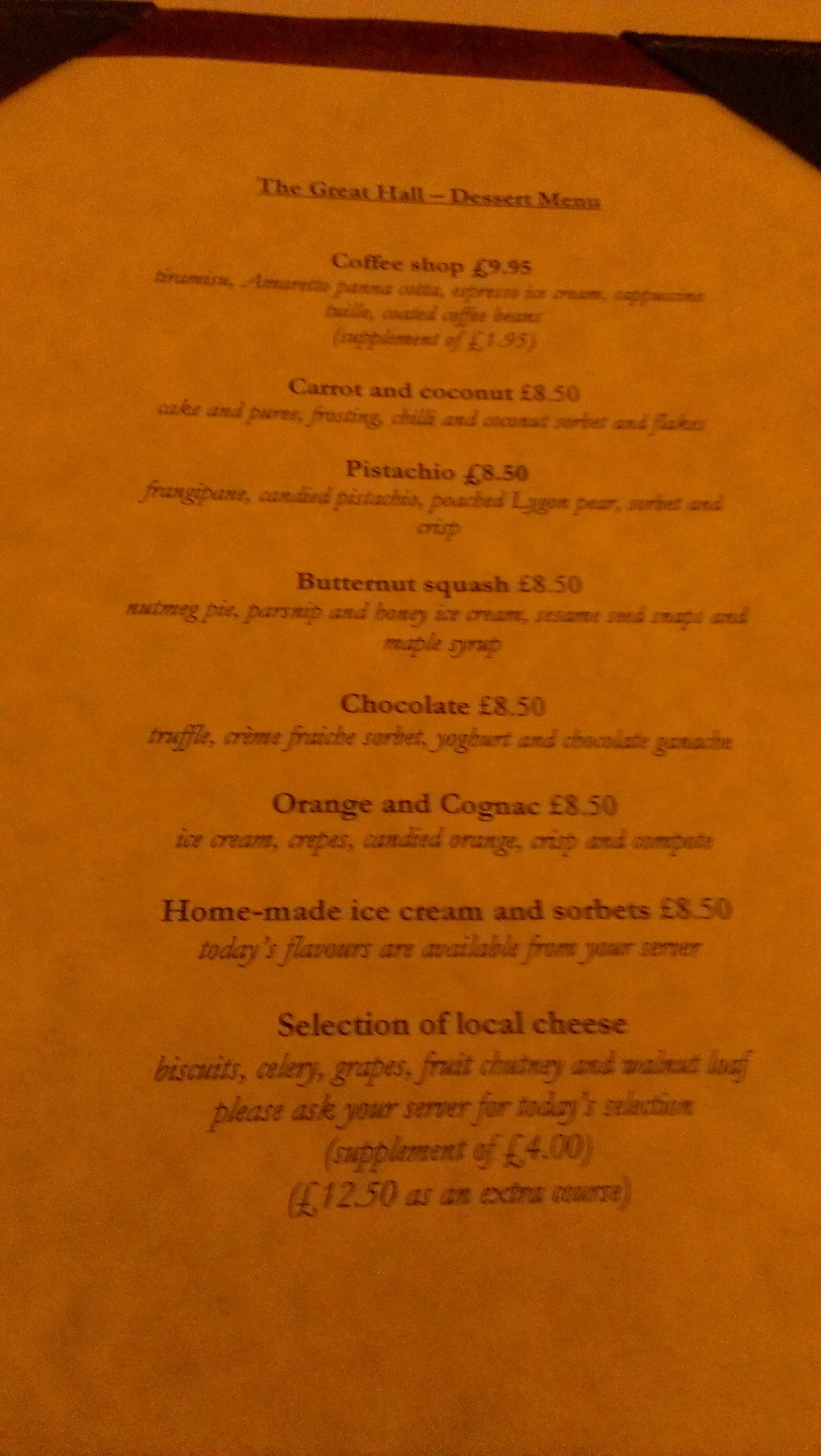 The table d’hôte menu (click to enlarge) and the choice of desserts