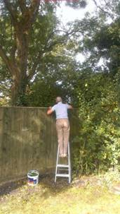 club accounts and started to paint the garden fence, left, while Teresa