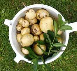 potatoes, grown in tubs on the patio, and were very pleased with them. We had remembered to use only freshly-bought