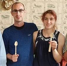 Juliet and Sam learned to carve wooden spoons.